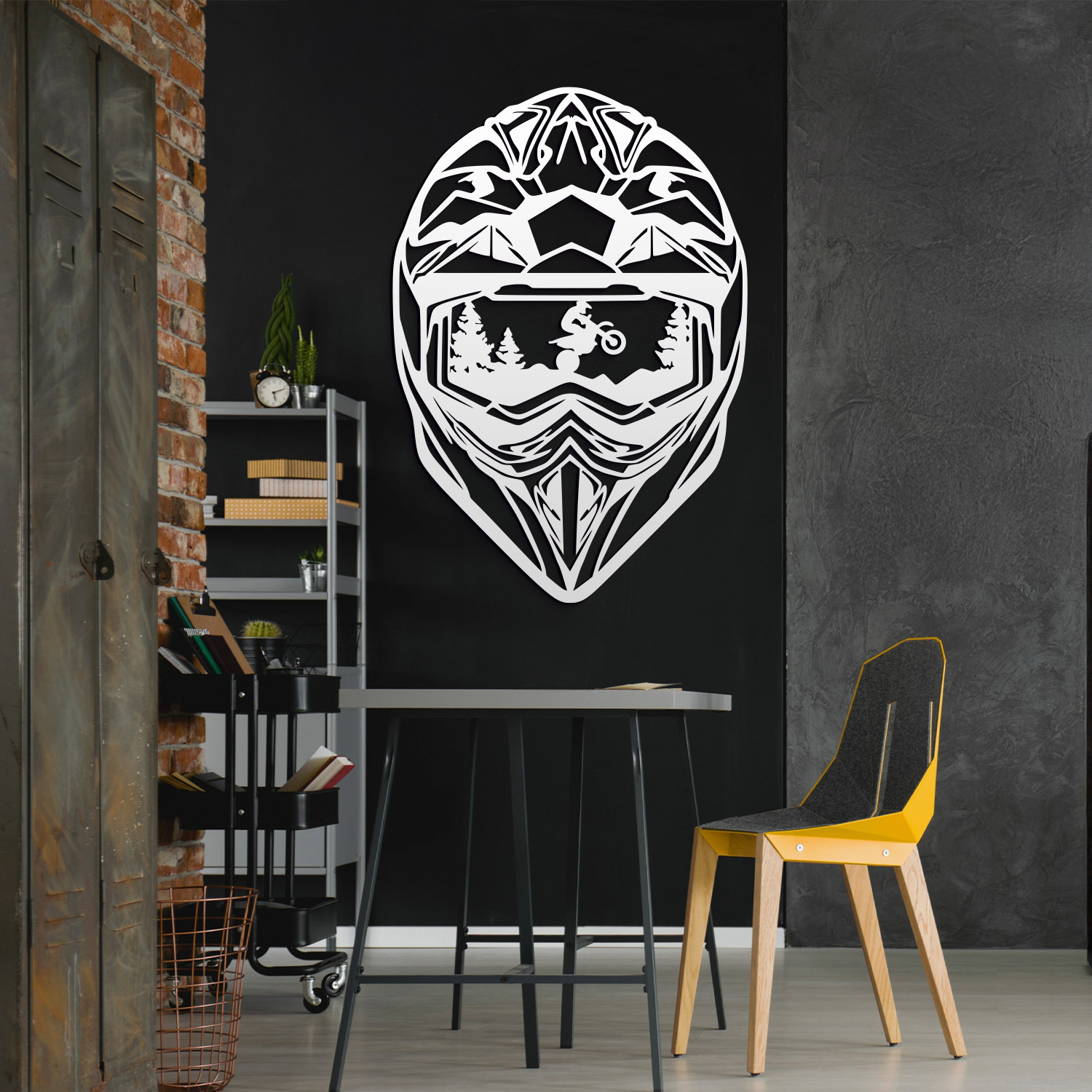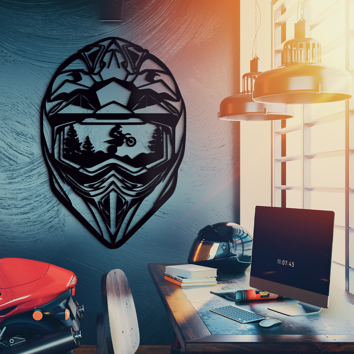 Originálna nástenná dekorácia v tvare motokrosovej prilby je neodmysliteľným doplnkom pre fanúšikov motoriek a motocrossu. Detailné vyrezávanie vytvára 3D efekt motorkára v lese, ktorý vynikne na každej stene a dodá interiéru moderný dizajn. Drevený moto obraz je ideálny do pracovne, garáže alebo chlapčenskej izby a predstavuje originálny darček pre každého motorkára.