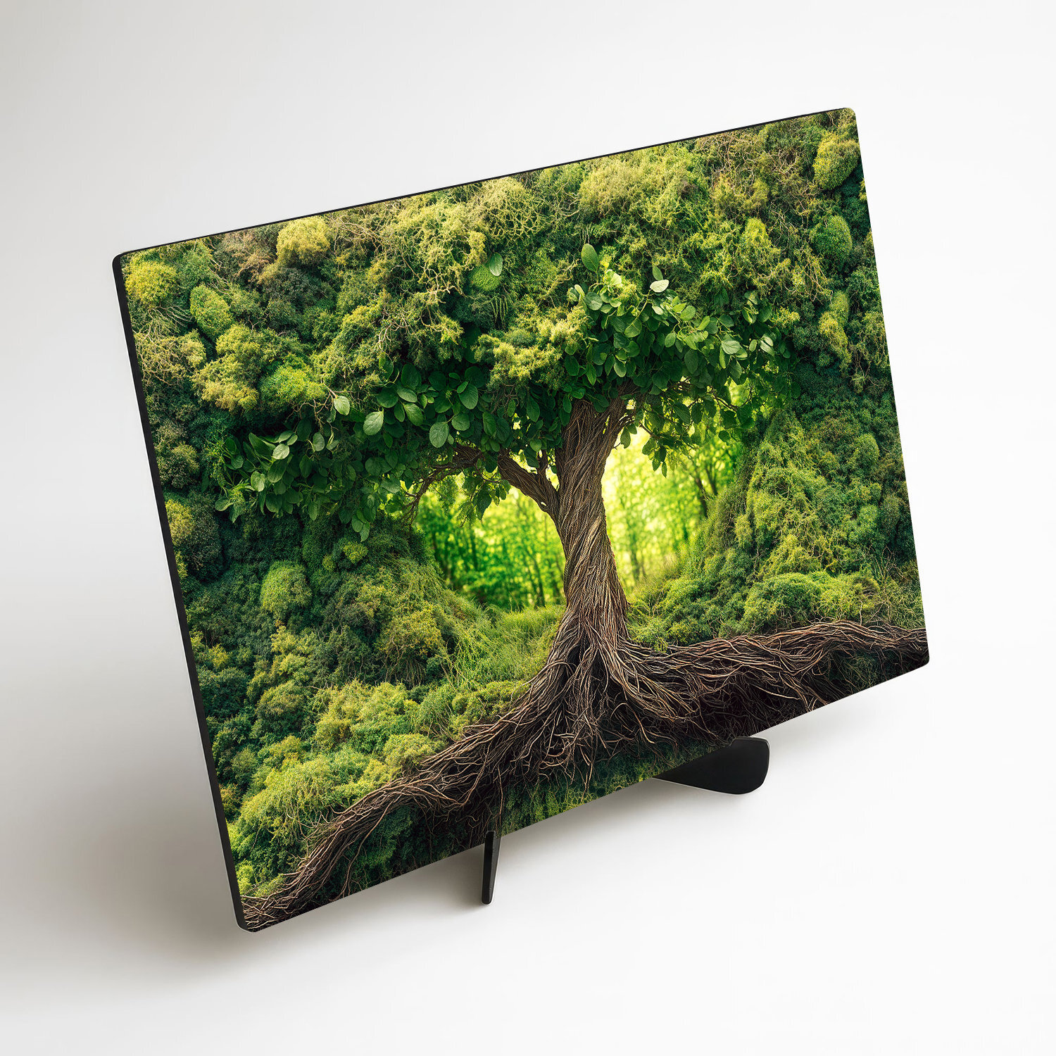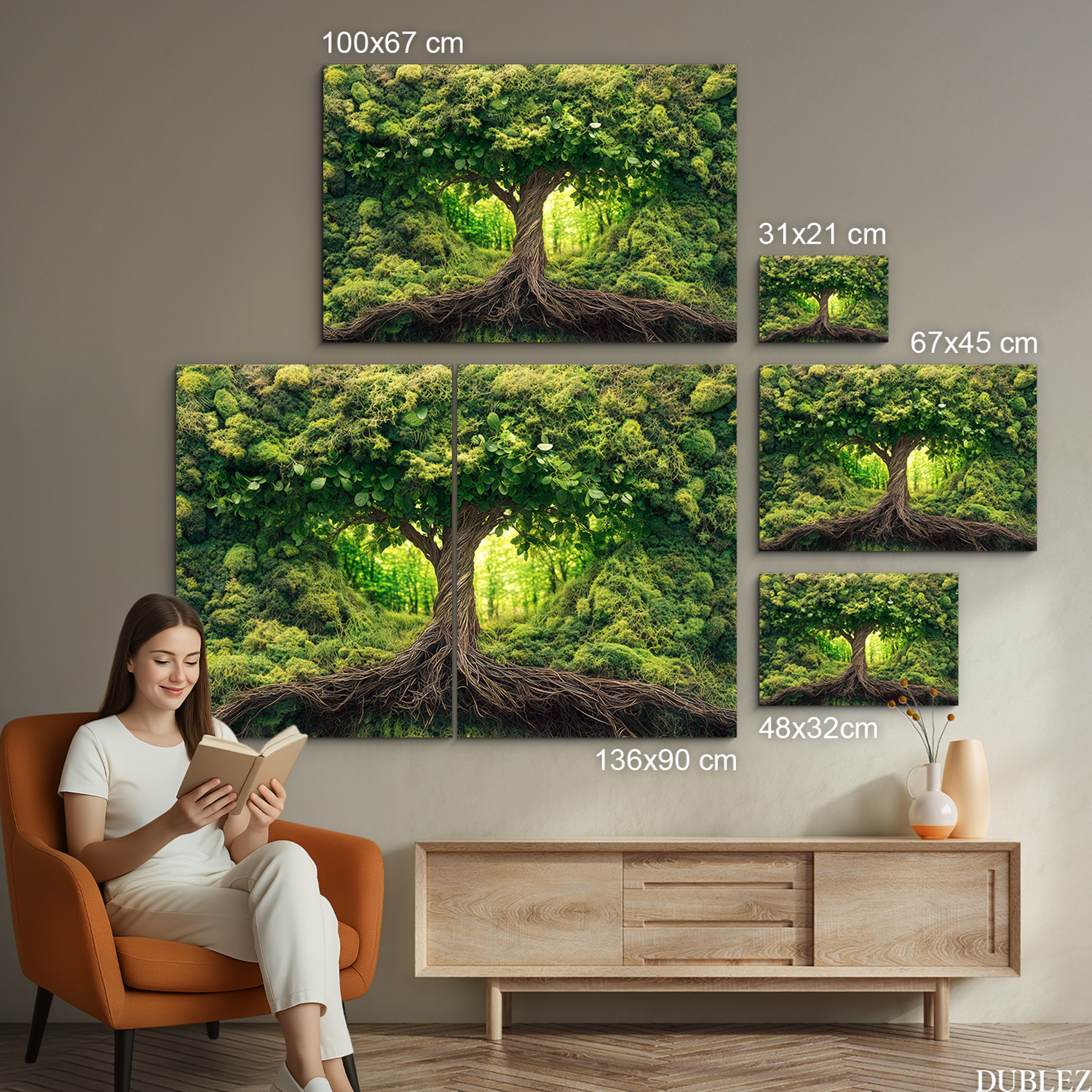 Zelený obraz stromu života v nedotknutej prírode vtiahne do interiéru pokoj a energiu lesa. Detailne tlačený mach, listy a korene vytvára pôsobivý 3D efekt, vďaka ktorému obraz doslova ožije na stene. Vynikne najmä v obývačke, spálni alebo vstupnej hale. Obraz je ideálnym darčekom pre milovníkov prírody, pokojného bývania a ekologického dizajnu.
