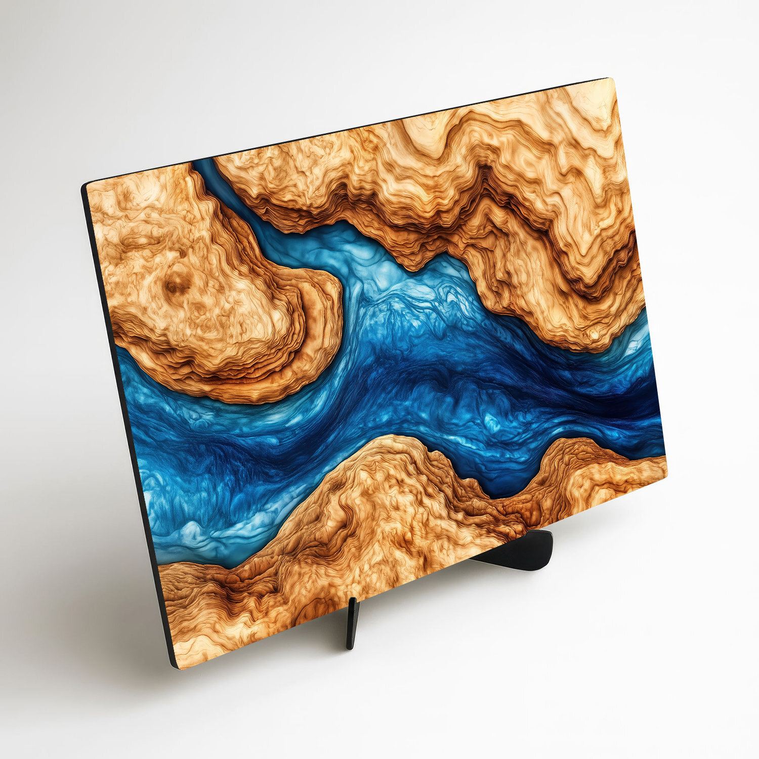 Imitácia živice a epoxidu v kombinácii s drevom, vytlačená vo vysokej kvalite pre dlhú životnosť, dokonalú hĺbku a sýte farby. Detailná kresba „dreva“ a realistický efekt „živice“ vytvárajú luxusný a moderný vzhľad, ktorý okamžite upúta pozornosť. Ideálny doplnok pre moderné, minimalistické či industriálne interiéry, ktorý vnesie do priestoru harmonické spojenie prírody a dizajnu.